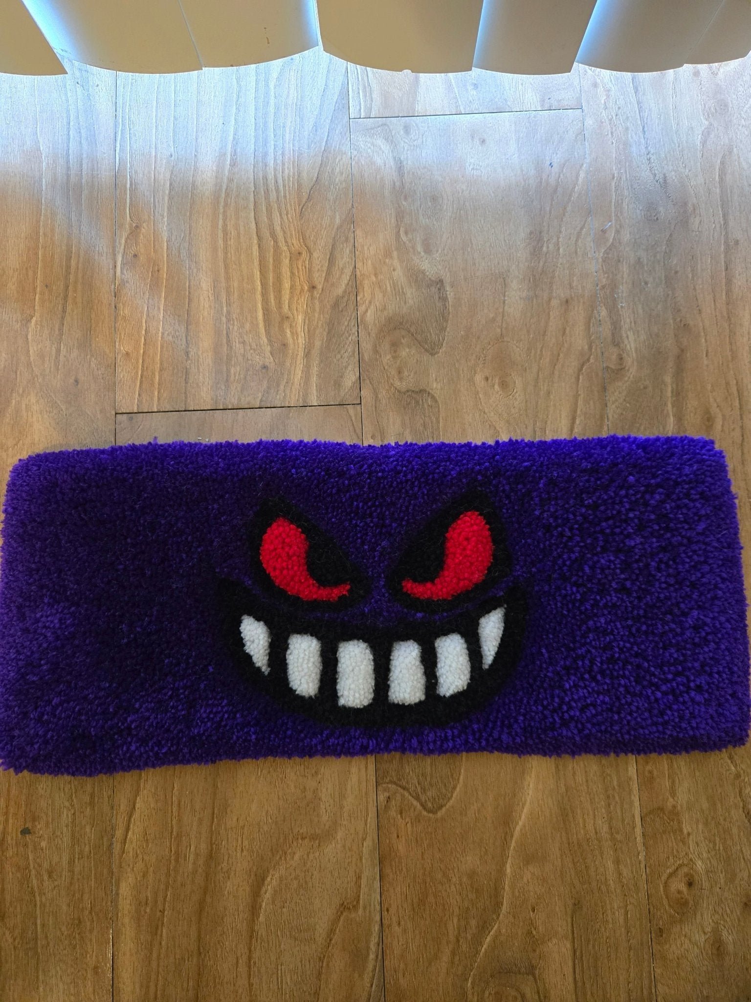 Add a playful touch of mischief to your space with this vibrant purple character tufted rug! Its bold colors and mischievous grin make it the perfect statement piece for gamers, anime fans, or anyone looking to spice up their decor. Whether used as a desk mat or a small area rug, it’s sure to catch the eye and spark conversations.